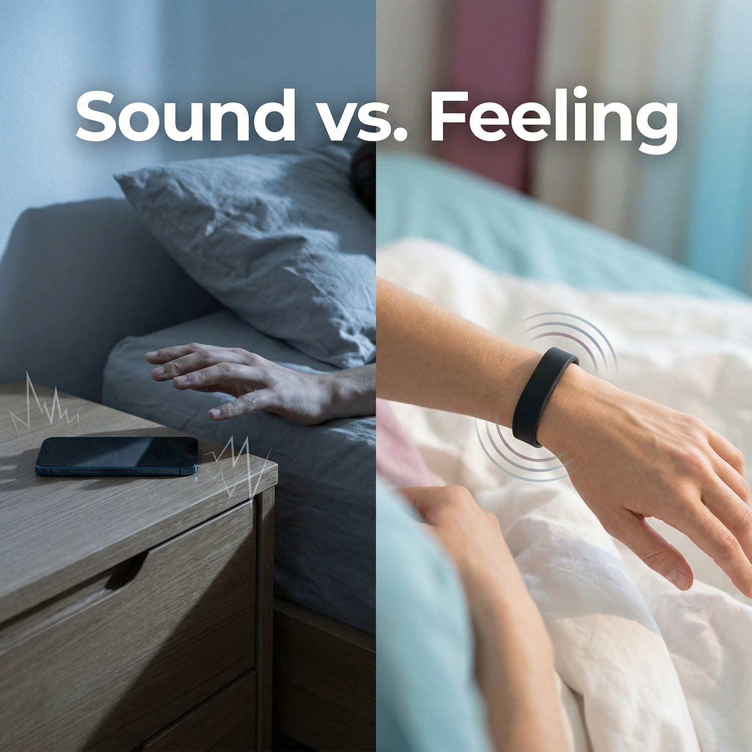 Studies on vibrotactile alerts and alarm systems indicate that touch-based cues are more reliable for waking people who cannot depend on sound, including Deaf and Hard-of-Hearing individuals and deep sleepers. Because vibration is felt directly through the skin, it triggers a faster and more consistent transition from sleep to wakefulness.
