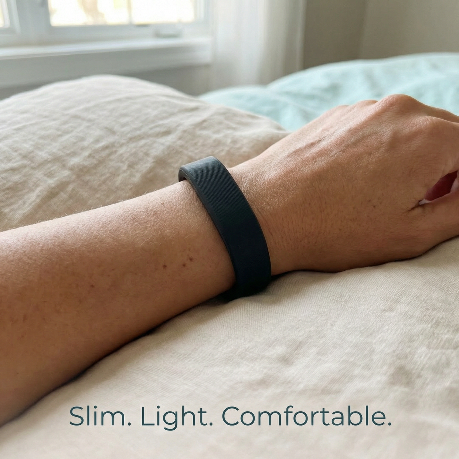 GetUp Band is lightweight, compact, and made to fit naturally in your hand and on your wrist. Its slim design and soft materials make it comfortable to wear all night — and easy to take with you during the day. No bulk, no unnecessary weight — just a wearable that feels right from the start.
