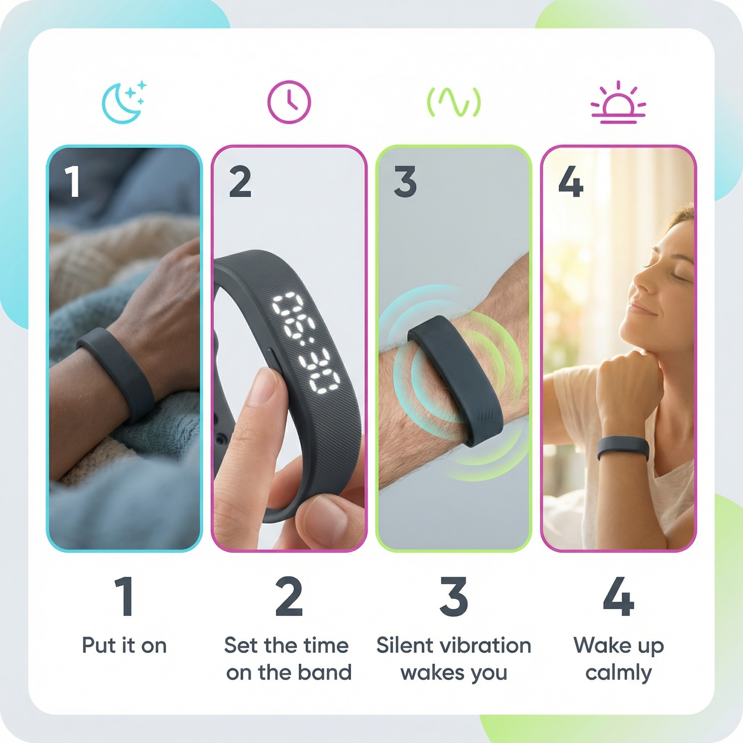 GetUp Band is designed to make waking up simple, reliable, and quiet. Every detail focuses on helping you wake up on time — without noise, stress, or unnecessary complexity.