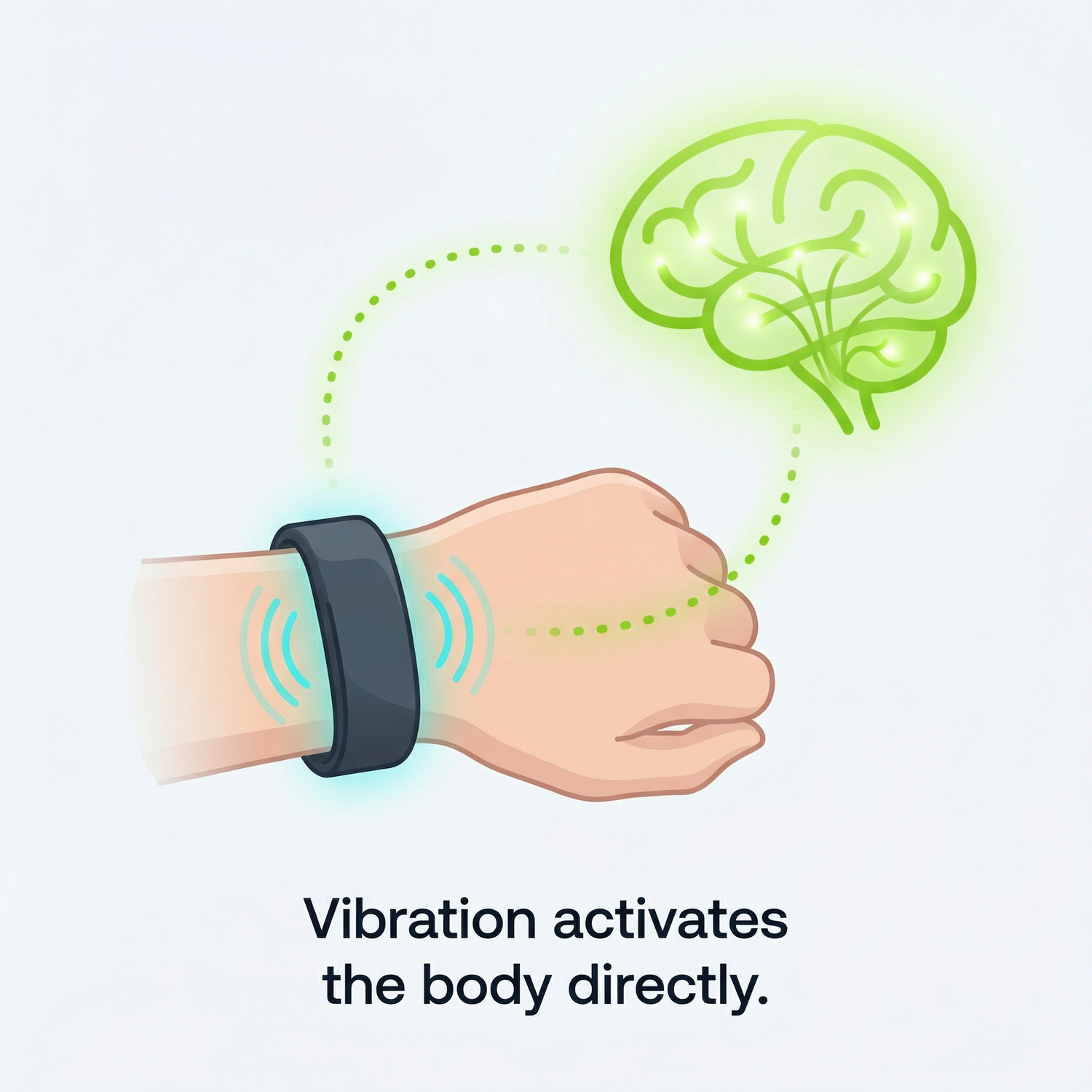 Sleep researchers have shown that tactile stimulation — such as vibration — activates the nervous system differently than sound. Unlike noise, which can be filtered or ignored during deep sleep, physical vibration is processed as a direct sensory signal by the body.
